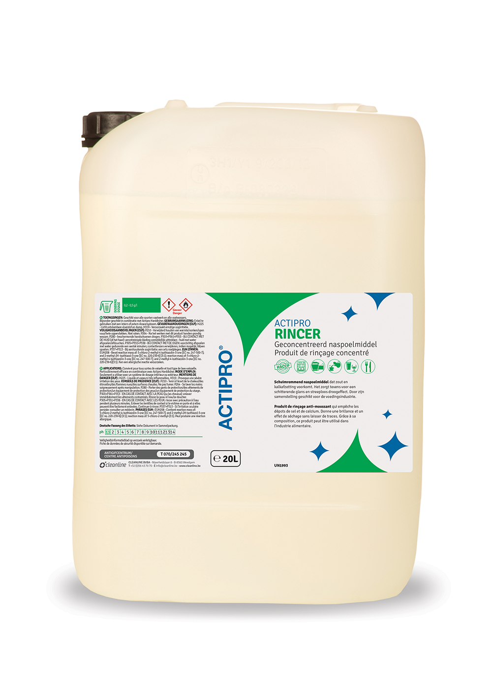 Produit de rinçage anti-mousse qui empêche les dépôts de sel et de calcium. Donne du brillance et un effet de séchage sans laisser de traces. Convient pour toute la vaisselle et tous les lave-vaisselles. En raison de sa composition, il convient à l'industrie alimentaire.
