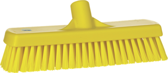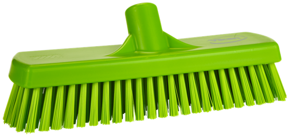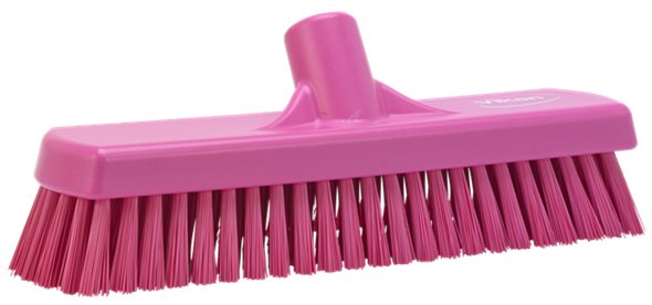 Brosse Vikan à récurer fibres polyester dur. Modèle large. 115 x 70 x 300 mm. Rose - Vert - Bleu - Rouge - Blanc - Jaune - Orange - Violet - Noir.