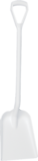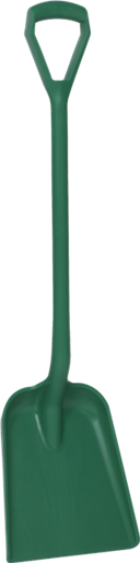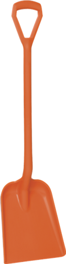 Vikan pelle polypropylène. Pele moulée ergonomique et hygiénique pour untilisation en environnement agroalimentaire. Manche court - 1040 mm. Godet plat - 270 x 330 x 50 mm. Poids: 1,2 kg. Vert - Bleu - Rouge - Blanc - Jaune - Orange - Noir.
