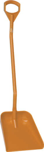 Pelle Vikan polypropylène. Pelle moulée ergonomique et hygiénique, résistante aux chocs, pour utilisation en environnement agroalimentaire. Manche long - 1300 mm. Godet Large 380 x 340 x 90 mm. Vert - Bleu - Rouge - Blanc - Jaune - Noir.