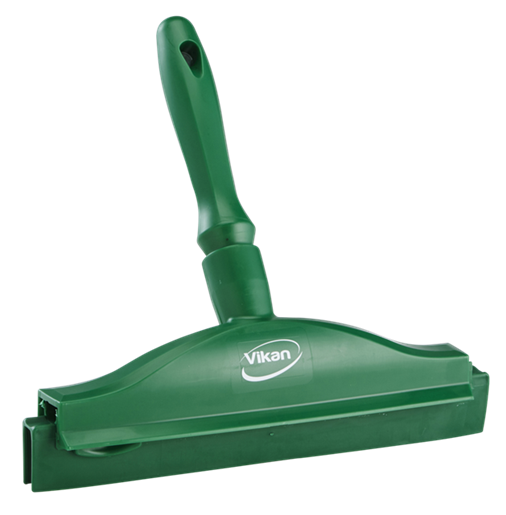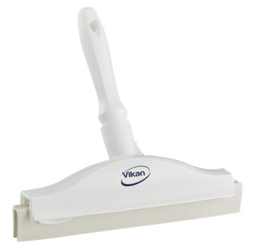 Raclette à main, 2C double lame polyprop ylène avec caoutchouc. Cette raclette convient particulièrement pour les surfaces où la raclette 40 cm est trop grande, par ex. pour l'élimina tion de l'eau sur les surfaces de tables . La cartouche se remplace aisément. 230 x 45 x 250 mm