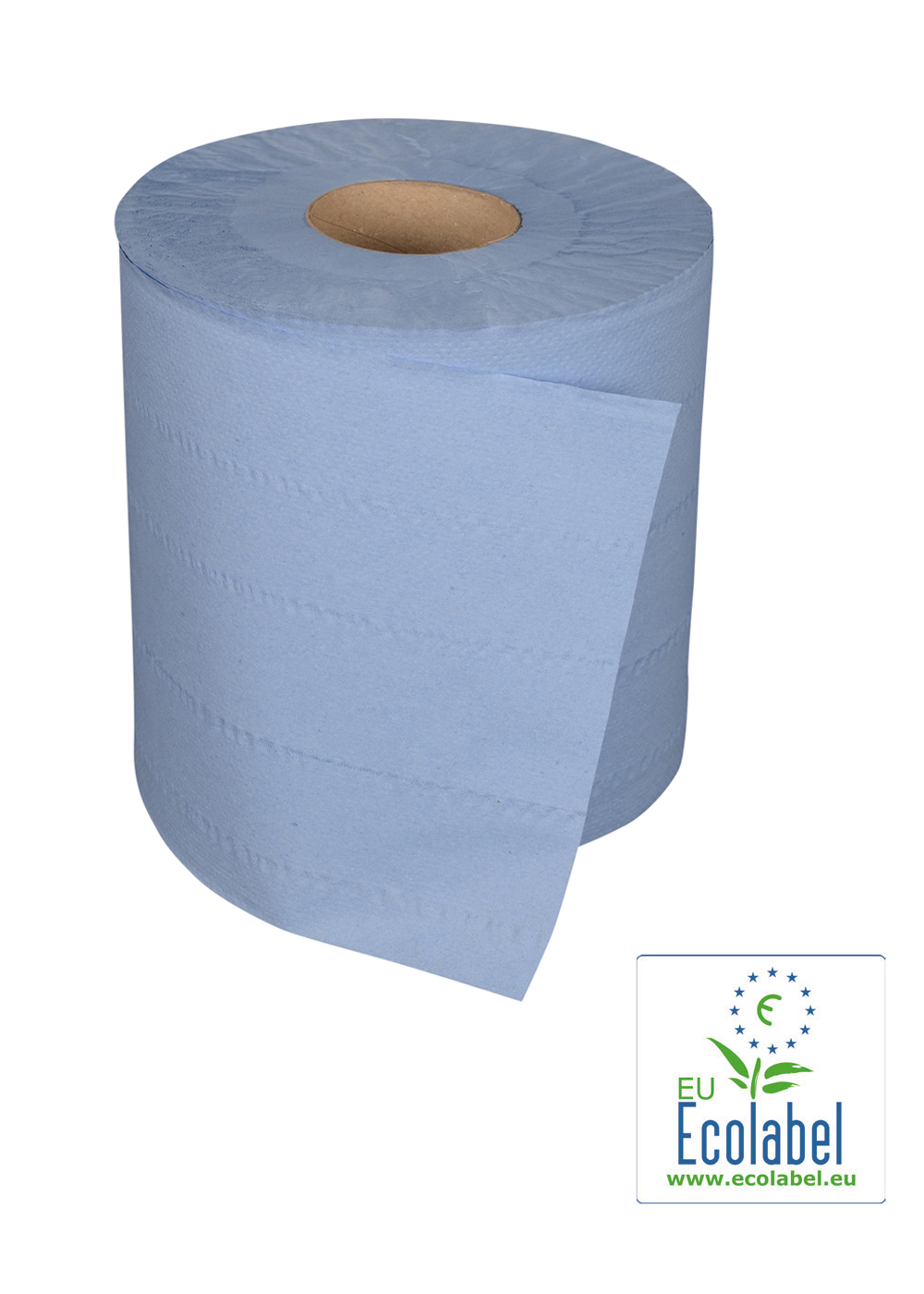 Papier d'essuyage midi, 2-pli, bleu. 100 % cellulose. Certifié Contact Alimentaire. 160 m x 19,8 cm - 420 formats.