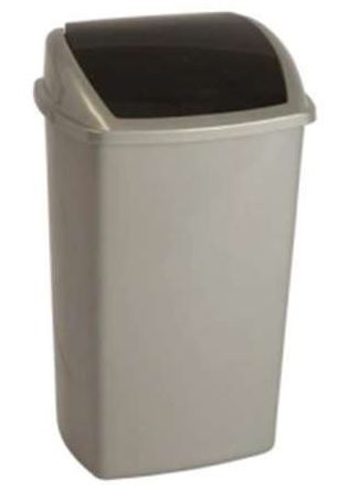 Poubelle en plastique avec couvercle pivotant 50 L. Convient pour un montage mural et peut également être placée sur le sol. Dimensions L 400 P 310 H 680. Peut être utilisée avec des sacs à déchets de 70 L. La poubelle est disponible on gris.