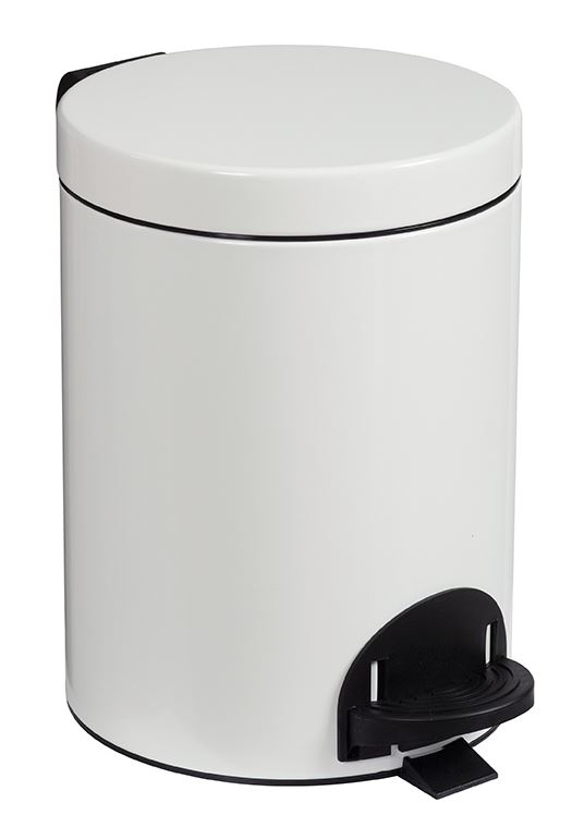 Poubelle à pédale 5L blanc. Poignée de préhension ergonomique. Pédale plastique antidérapente avec large protection contre les corps de pieds. Méthode HACCP.