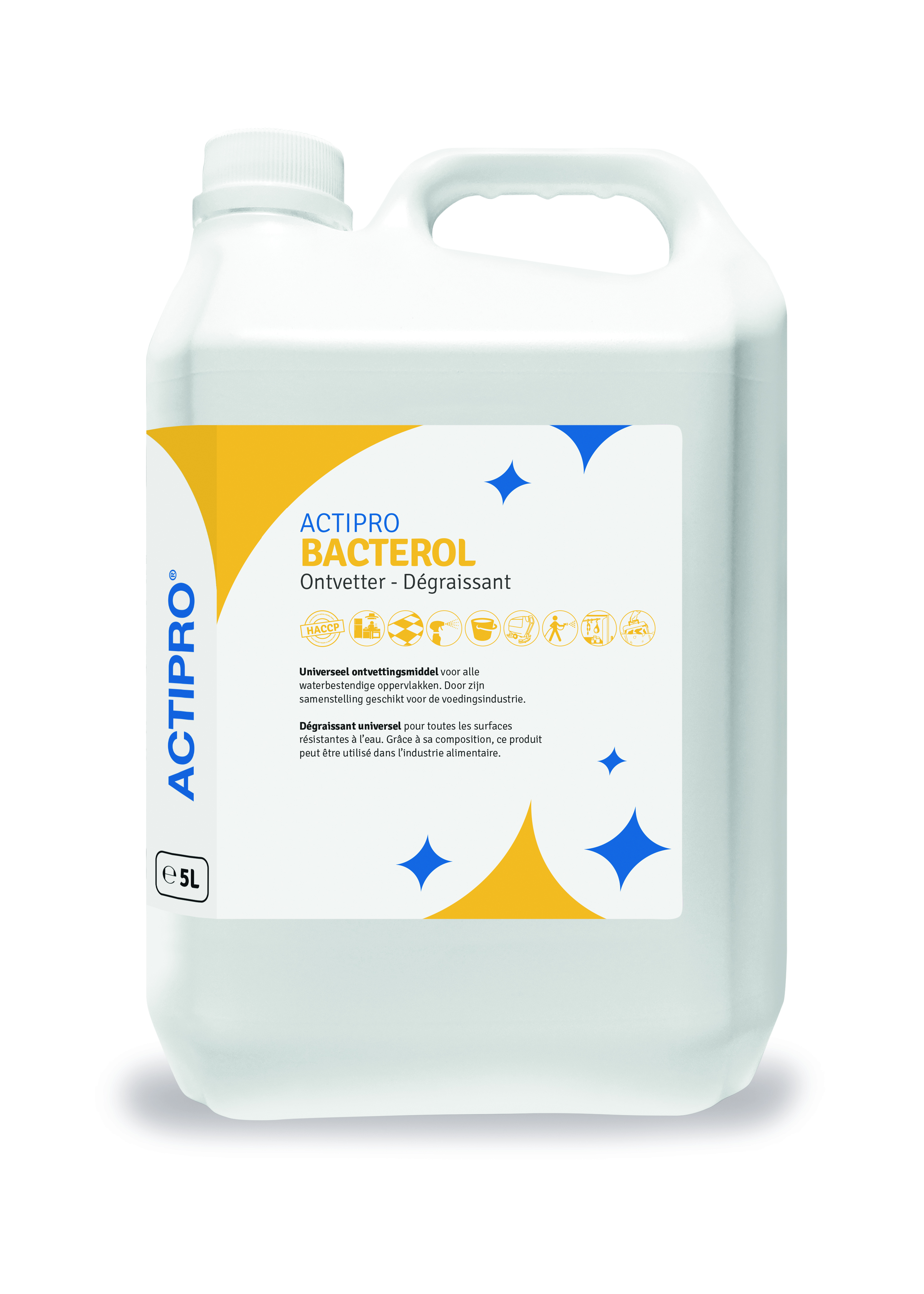 Universeel ontvettingsmiddel. Door zijn samenstelling geschikt voor gebruik in de voedingsindustrie. Ontvet alle oppervlakken zoals inox, polyester, pvc, plastiek, staal, beton, keramiek, hout, steen, glas… Niet geschikt voor aluminium.
