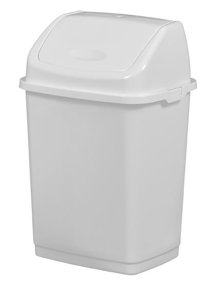 Fixation murale est possible. Afvalbak met swingdeksel 5 liter. Mogelijkheid tot muurbevestiging. Plastiek polypropyleen. Makkelijk in onderhoud. Schokbestendig.