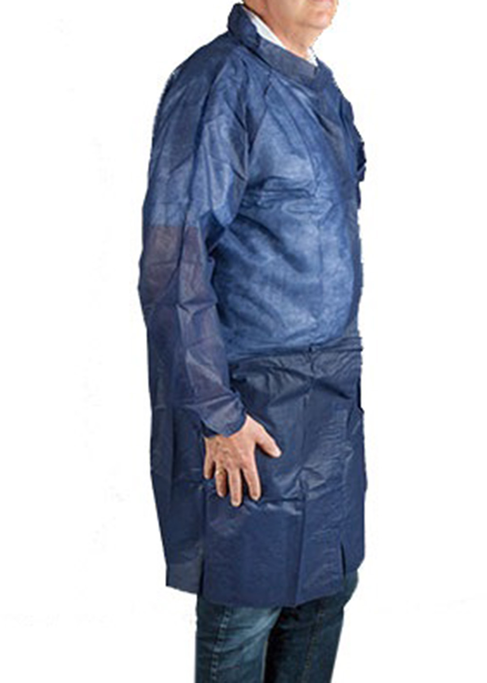 Non-woven bezoekersjas met velcrosluitin g, kraag en polselastieken Blauw, 50x1st/omdoos, 40gsm