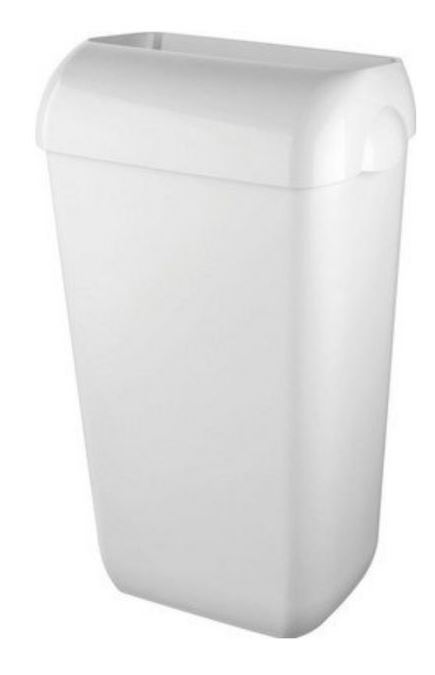 Deze elegante afvalbak kan je zowel staand als hangend gebruiken. Voorzien van een open inworp waardoor aanraking van een klepdeksel niet nodig is. Volledig verborgen afvalzak. Afmetingen: 620 x 400 x 280 mm. Kunststof wit.
