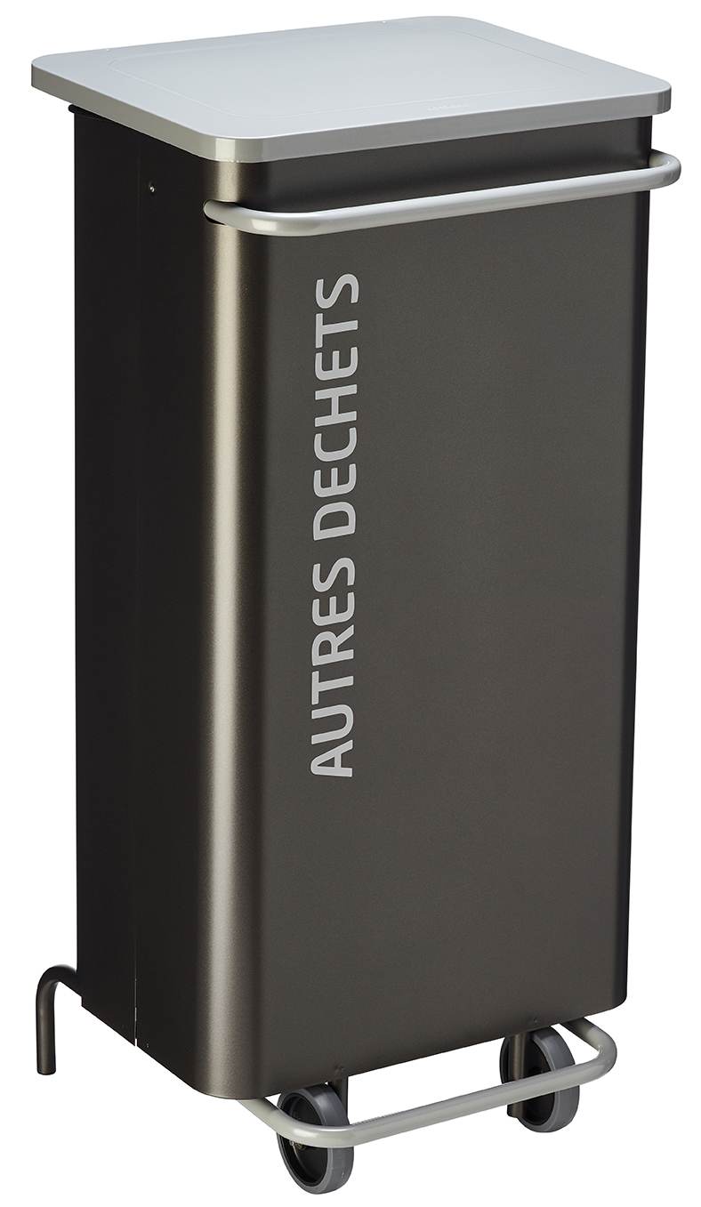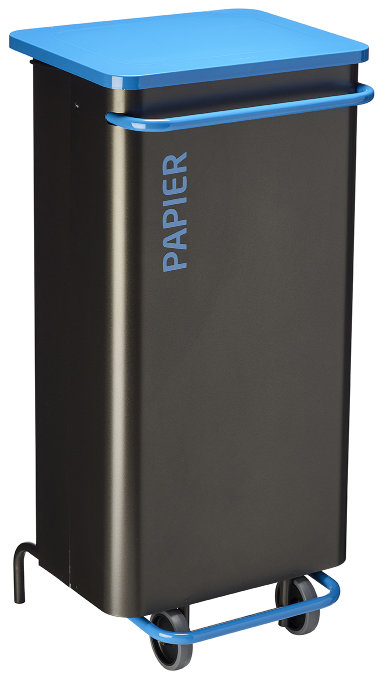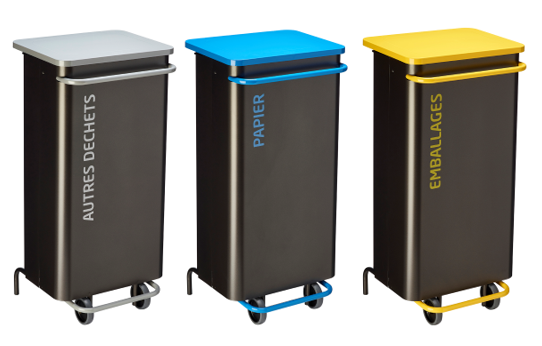 De mobiele sorteerbak NOMADE 110L is ideaal voor de sortering in overdekte ruimten. Grijze body - kleurcodering via het deksel, handvat en voetpedaal. Kleuren: Grijs, Blauw of Geel. HACCP methode.