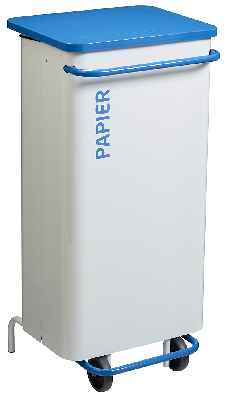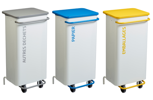 De mobiele sorteerbak NOMADE 110L is ideaal voor de sortering in overdekte ruimten. Witte body - kleurcodering via het deksel, handvat en voetpedaal. Kleuren: Grijs, Blauw of Geel. HACCP methode.