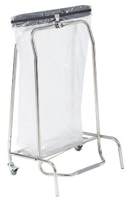 De mobiele vuilniszakhouder met afsluitklep is ideaal om te gebruiken in de gezondheidssector. Kan met de klep hermetisch afgesloten worden. Er zijn 2 rubberen wielen met remmen en de buizen zijn vervaardigd uit inox. Vuilniszakken zijn niet inbegrepen. Afmetingen: 415 x 425 x 525 x 920 mm.