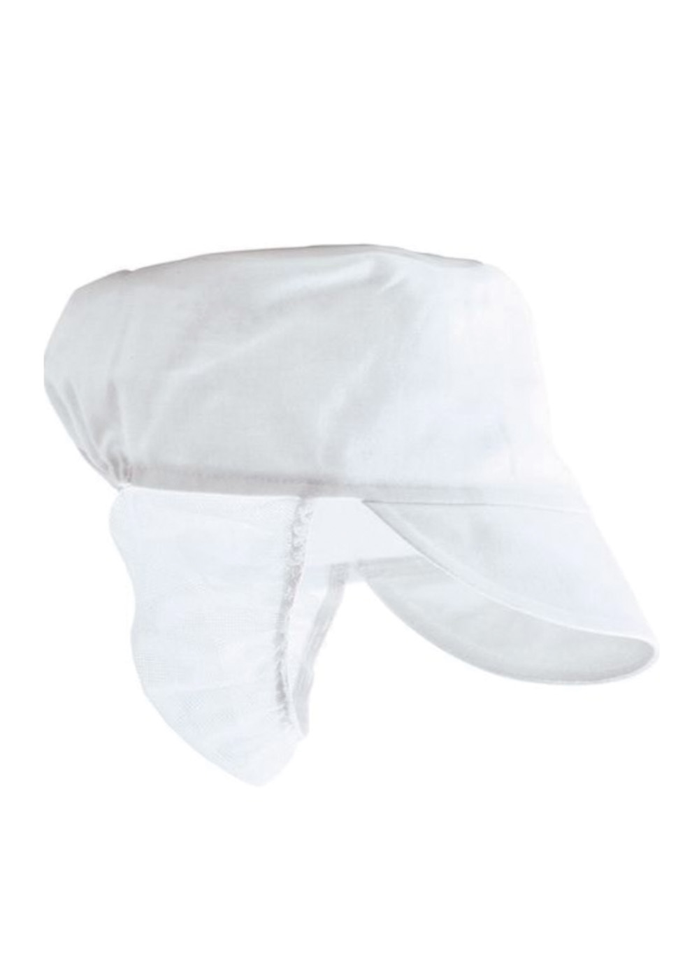 Haarnetje in het wit. Model pet met klep en opvangnet. Is niet geplooid.
