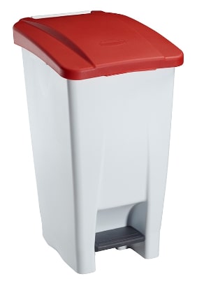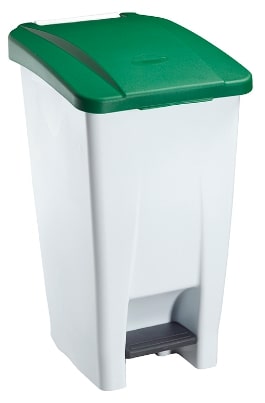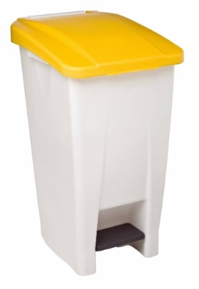 Mobiele pedaalemmer HDPE met een inhoud van 60 liter. Makkelijk onderhoud Kleurgecodeerd klapdeksel verkrijgbaar in: wit, geel, blauw, groen en rood. Vervaardigd uit PE.