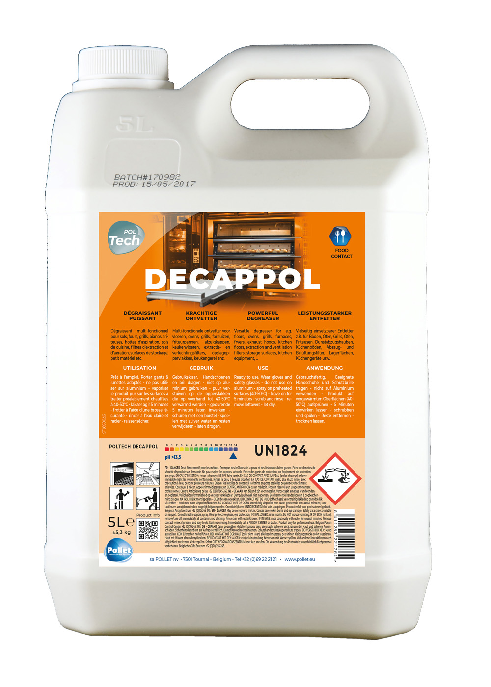 Gebruiksgemak met één product voor het ontvetten van talrijke oppervlakken: ovens, grills, piano's, frituurpannen, afzuigkappen, keukenvloeren, extractie- en verluchtingsfilters, kleine materialen, opslagoppervlakken, ... 5l/bidon - 4 x 5 l/omdoos.