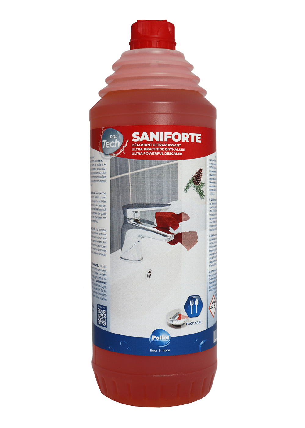 Krachtige ontkalker voor sanitaire omgevingen. Doeltreffend op kalkaanslag en roest. Bloemig parfum. 1x1l/flacon - 6x1l/omdoos