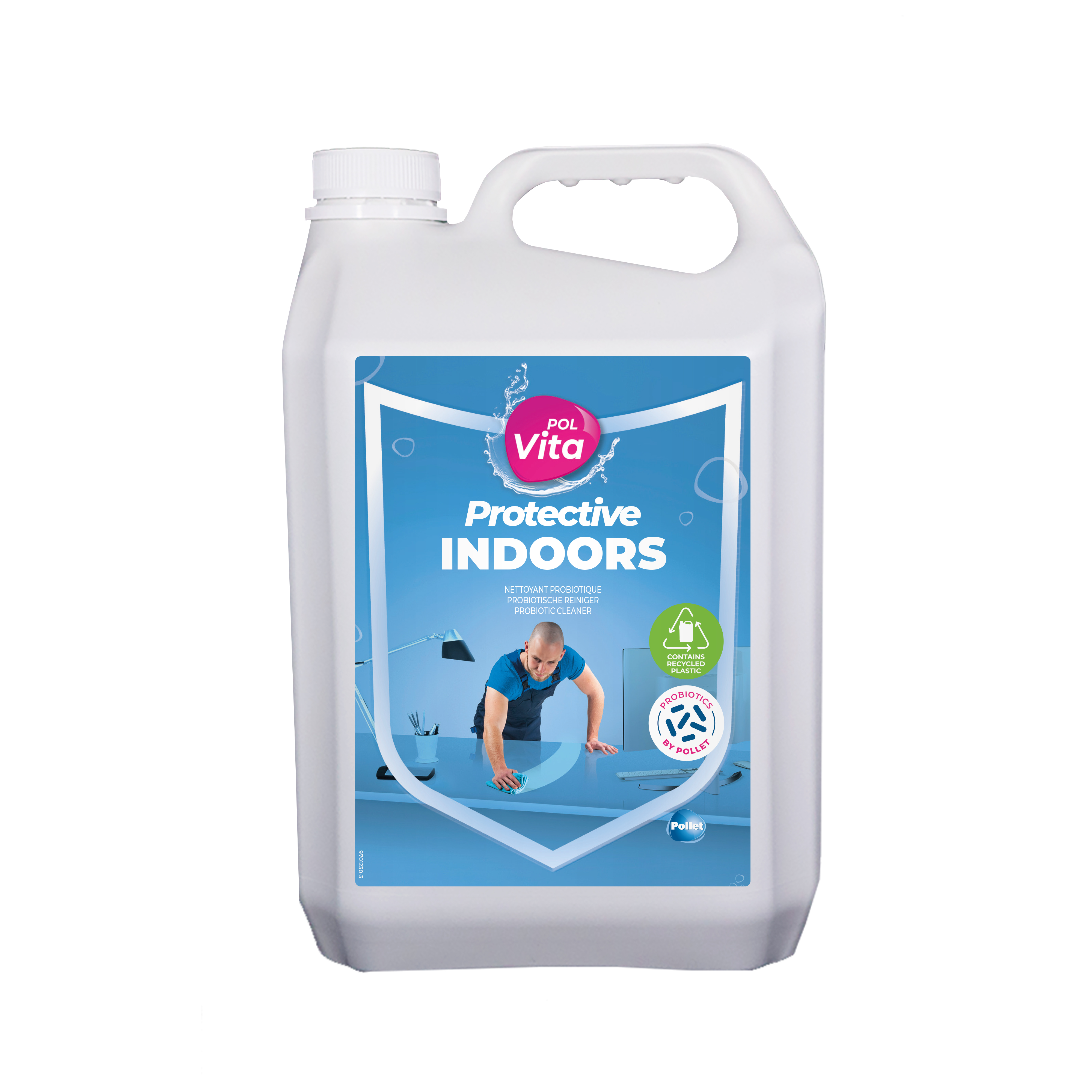 Oppervlaktereiniger met beschermende probiotica. Geconcentreerd reinigingsmiddel voor dagelijks gebruik dat het welzijn bevonrdert, dankzij toevoeging van natuurlijk beschermende microflora. Efficiënte en continue reiniging tegen vuil en vernietiging van onaangename geuren. Kan gebruikt worden in de gezondheidszorg en voor algemeen onderhoud. Geur: munt - Bidon van 5L