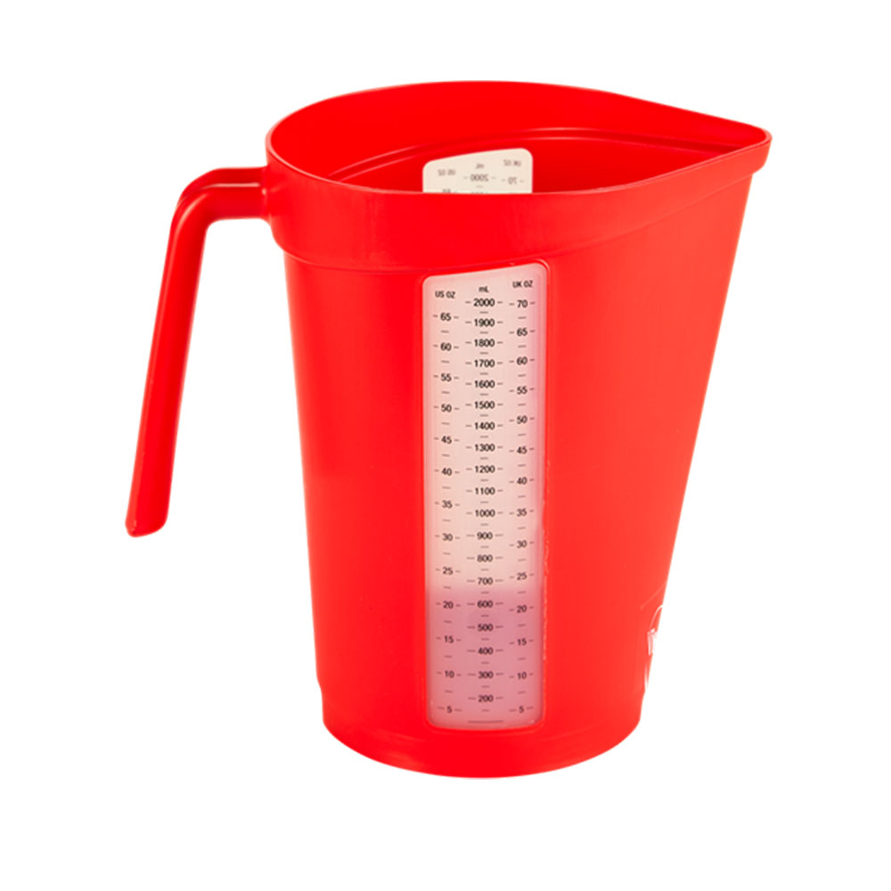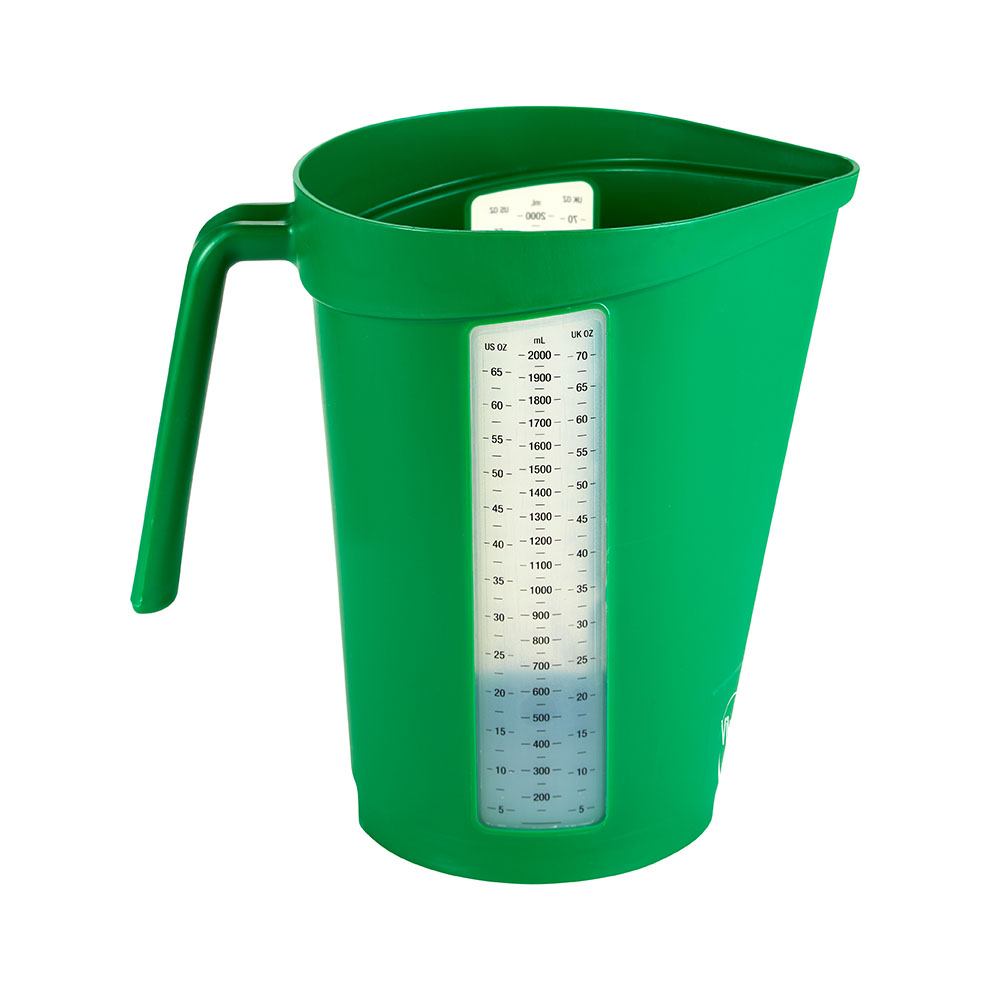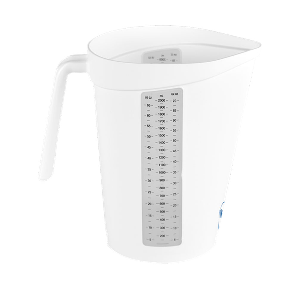 Slim ontworpen maatbeker voor nauwkeuriger vullen, meten en gieten. Heeft verschillende maateenheden: milliliters, UK- en US gallons. Beschikbaar in blauw, geel, groen, rood of wit.