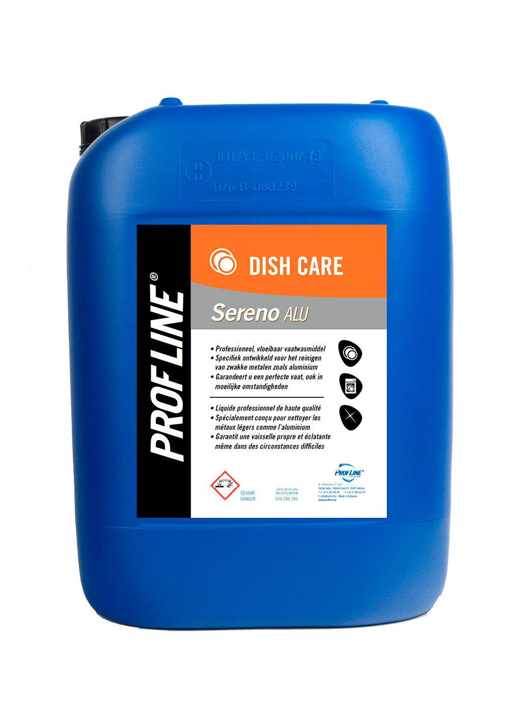 Profline Sereno ALU is een professioneel, vloeibaar vaatwasmiddel dat geschikt is voor alle soorten alkalibestendig vaatwerk doch specifiek ontwikkeld voor het reinigen van zwakke metalen zoals aluminium en koper. Het product is laag alkalisch en bevat geen chloor, fosfaten alsook geen enkele corroderende grondstof. Sereno Alu bevat een groot deel aan corrosiewerende componenten die een beschermende werking uitvoeren op metalen.