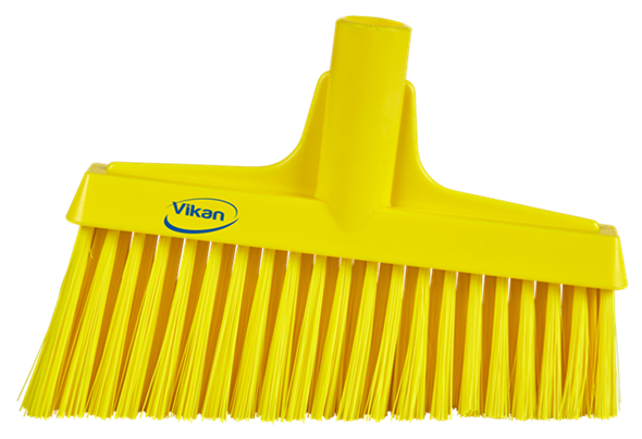 Vloerveegborstel, hoekbezem. Geschikt voor zowel droog als vochtig vuil weg te vegen. Zorgt voor een ergonomische veeghouding. 260 mm - medium type. De Vikan borstel is beschikbaar in verschillende kleuren.